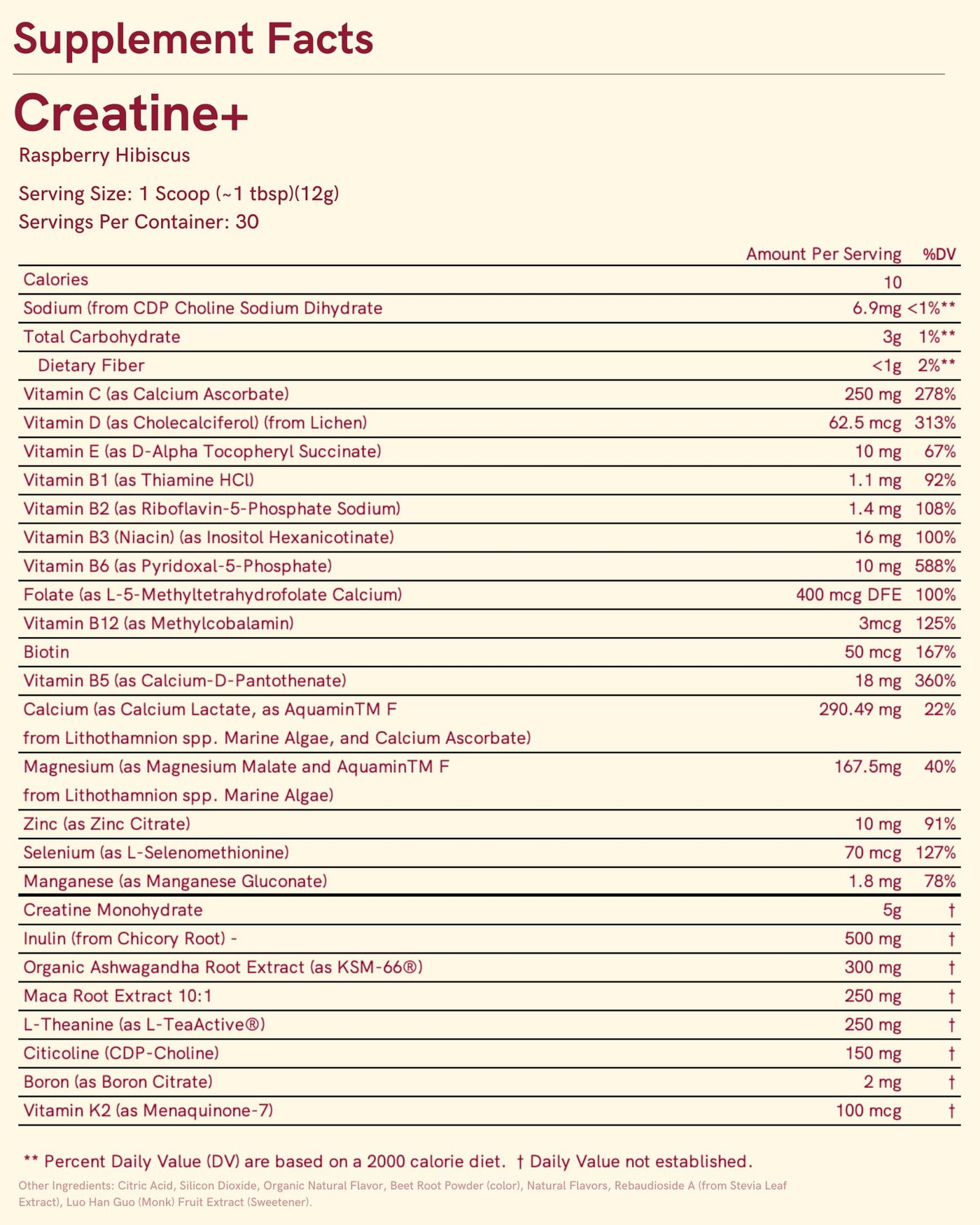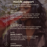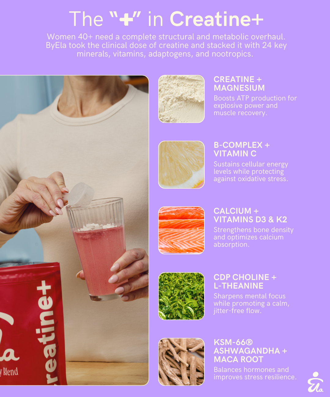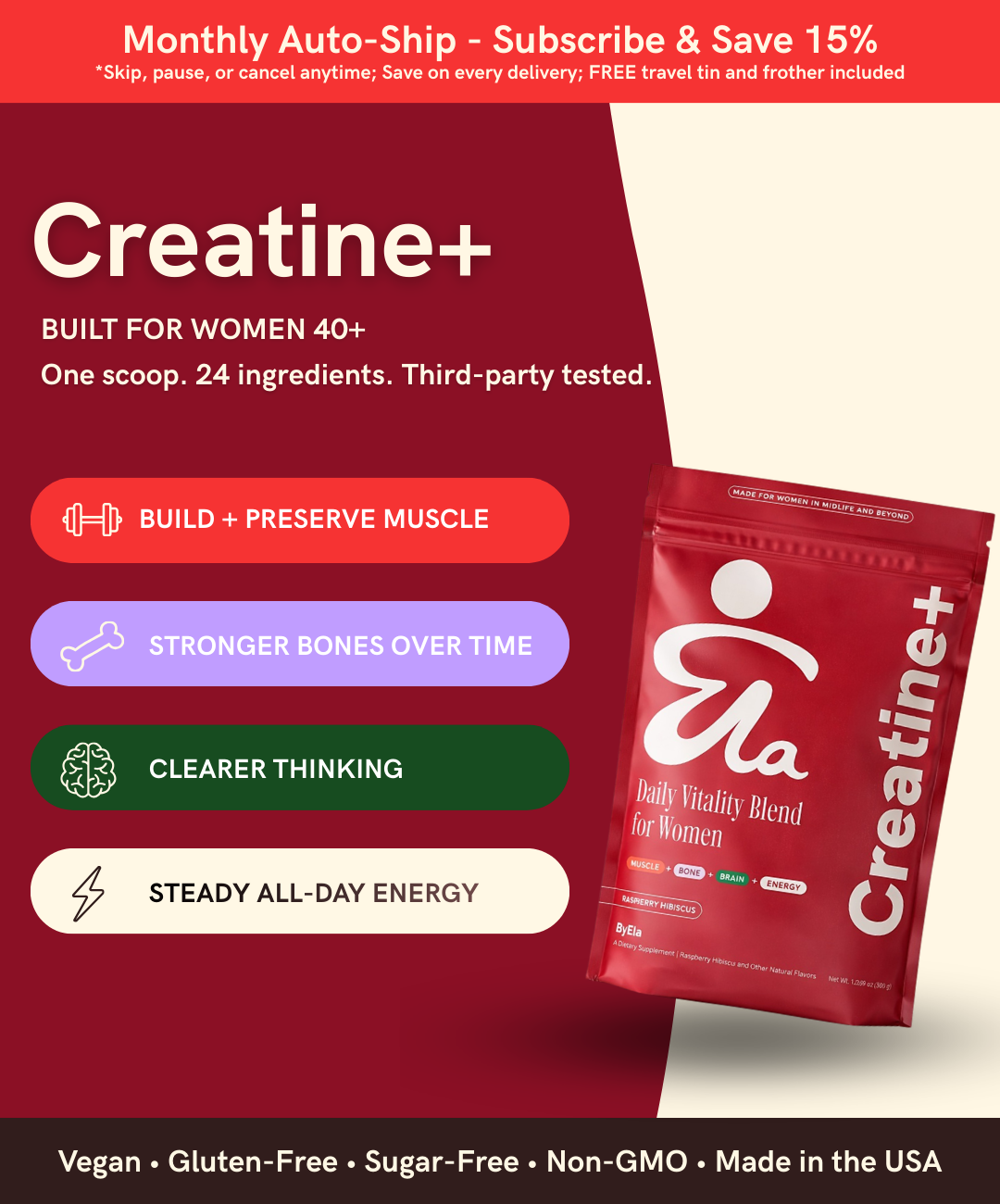 Creatine+ isn’t a “catch-all” multivitamin. It’s a targeted, intentional formula that includes essential nutrients for midlife women in their ideal, bioavailable forms and effective dosages. Many women choose Creatine+ instead of a multivitamin because it covers what truly matters for muscle, bone, brain, and energy — without unnecessary fillers.